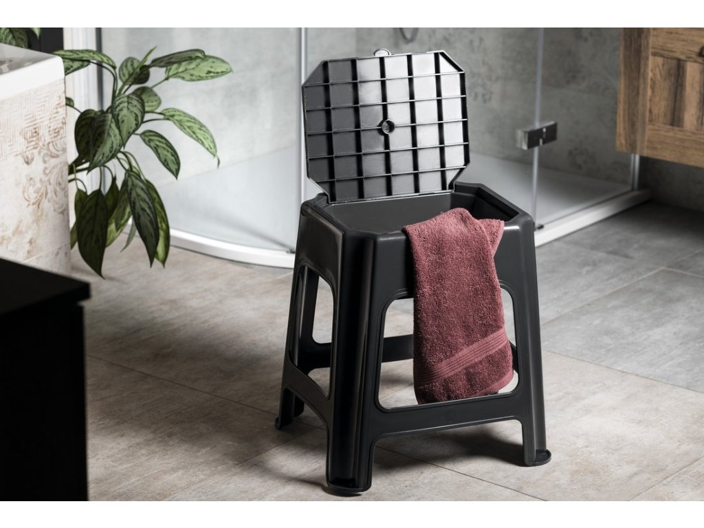 Aqualine Koupelnová stolička s úložným prostorem, černá 90902B