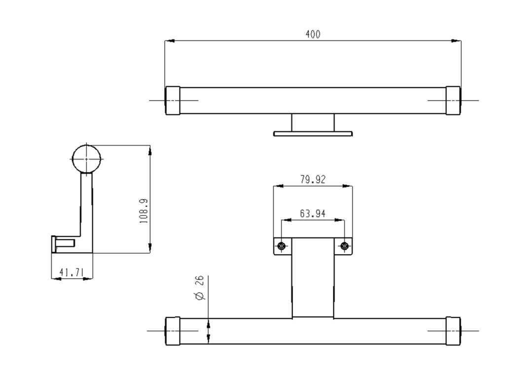 Aqualine KRONAS LED svítidlo, 6W, 230V, 400x40x100mm, IP44, plast, chrom KA400