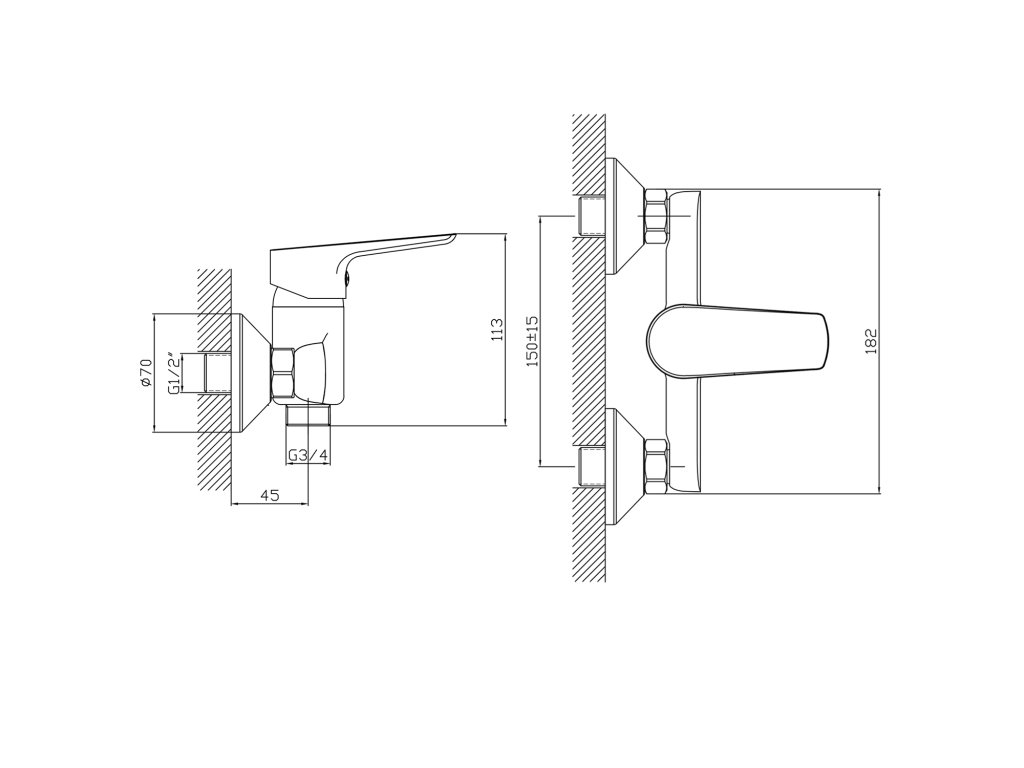 | Instalace: | Nástěnná 150 mm |