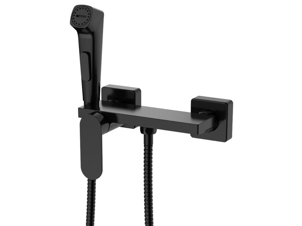 Aqualine Nástěnná bidetová baterie se Stop sprškou a poličkou, černá mat TJ042B