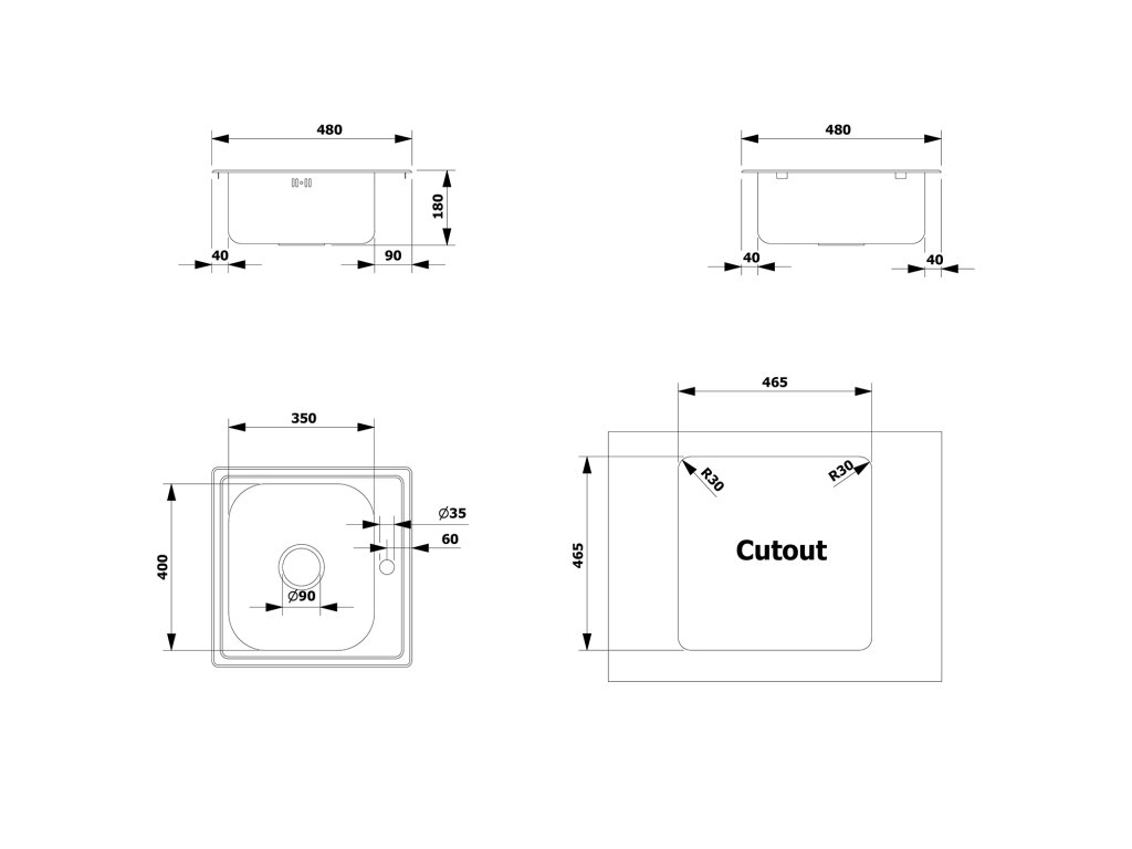 Aqualine Nerezový vestavný dřez 48x18x48cm AQ4848B