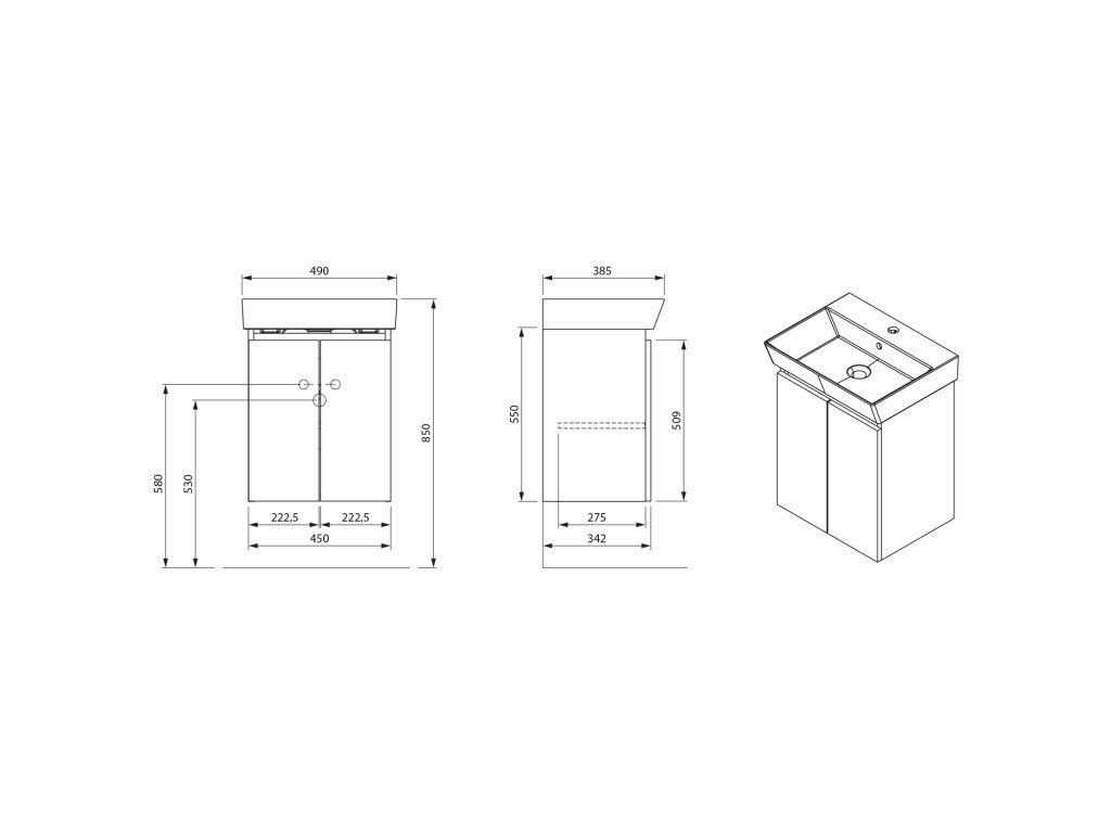 Aqualine PANEDA umyvadlová skříňka 45x55x34,2cm, bílá PN245