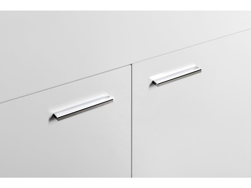 • Skříňka s chromovými úchytkami.