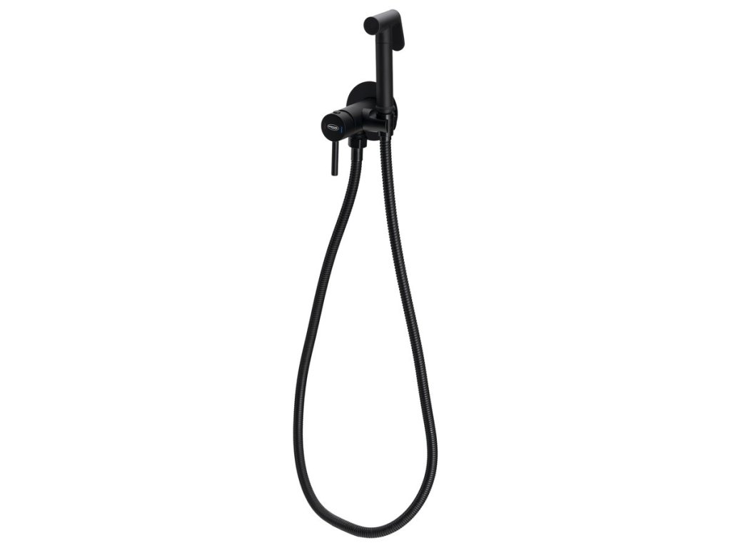 Aqualine Podomítková bidetová baterie se Stop sprškou, hadice 1,2m, kulatá, černá mat SK302B