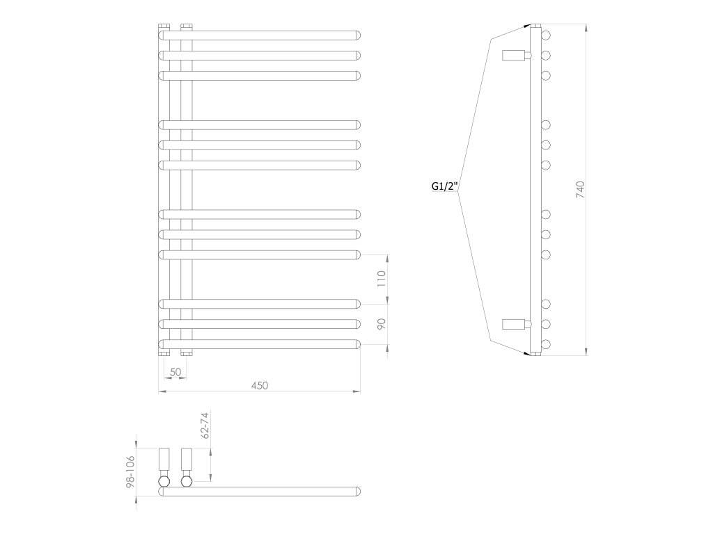 Klasické trubky s kruhovým profilem sestavené v designový radiátor, který lze díky středovému připojení s roztečí 50 mm kombinovat s ventily z naší nabídky.