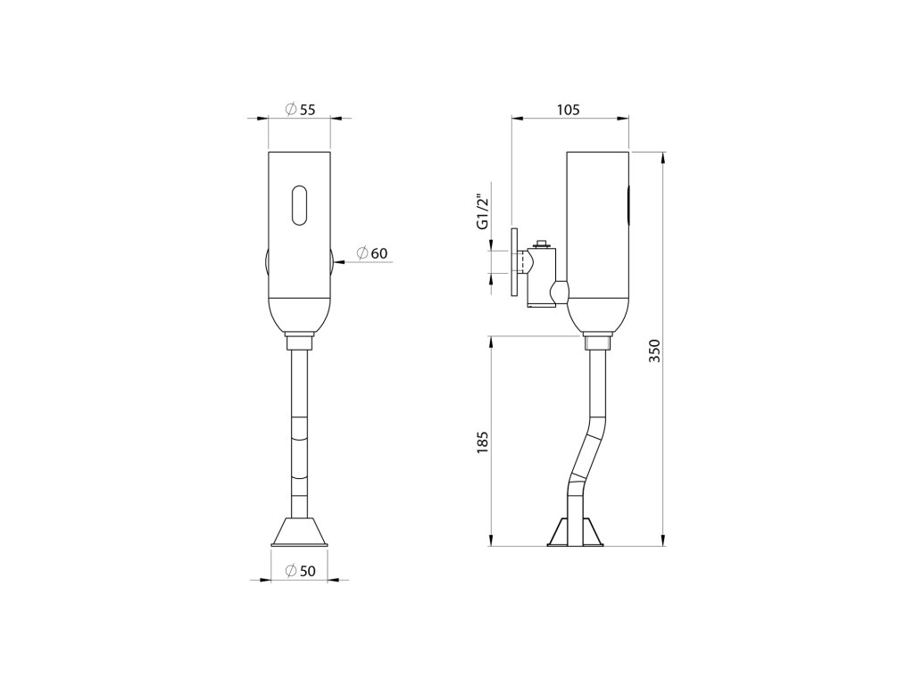 Aqualine Senzorový nástěnný ventil pro urinál, 6V DC (4xAAA), chrom PS833