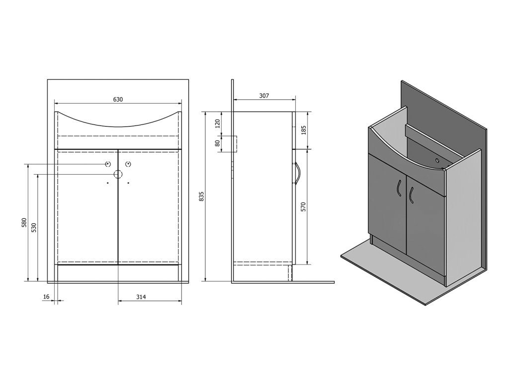 Aqualine SIMPLEX ECO 65 umyvadlová skříňka včetně umyvadla 63x83,5x30,7cm SIME650