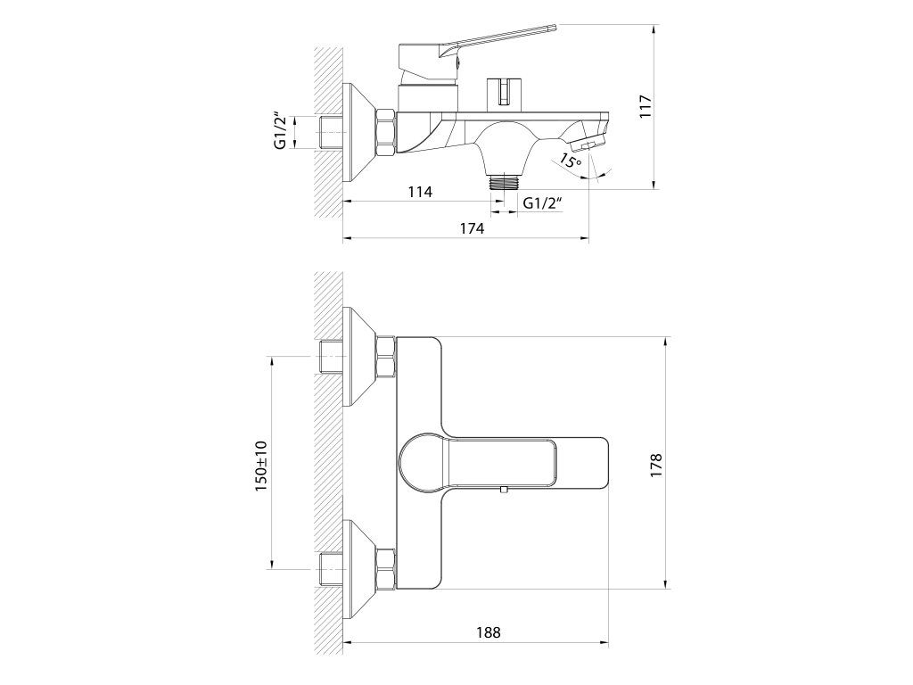 | Instalace: | Nástěnná 150 mm |