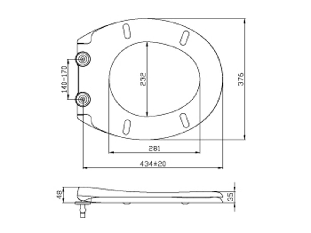 - Nastavitelné úchyty, které umožní sedátko přizpůsobit rozměrům mísy. Rozpínací pant je vhodný pro běžný otvor ve WC míse o Ø 14 mm