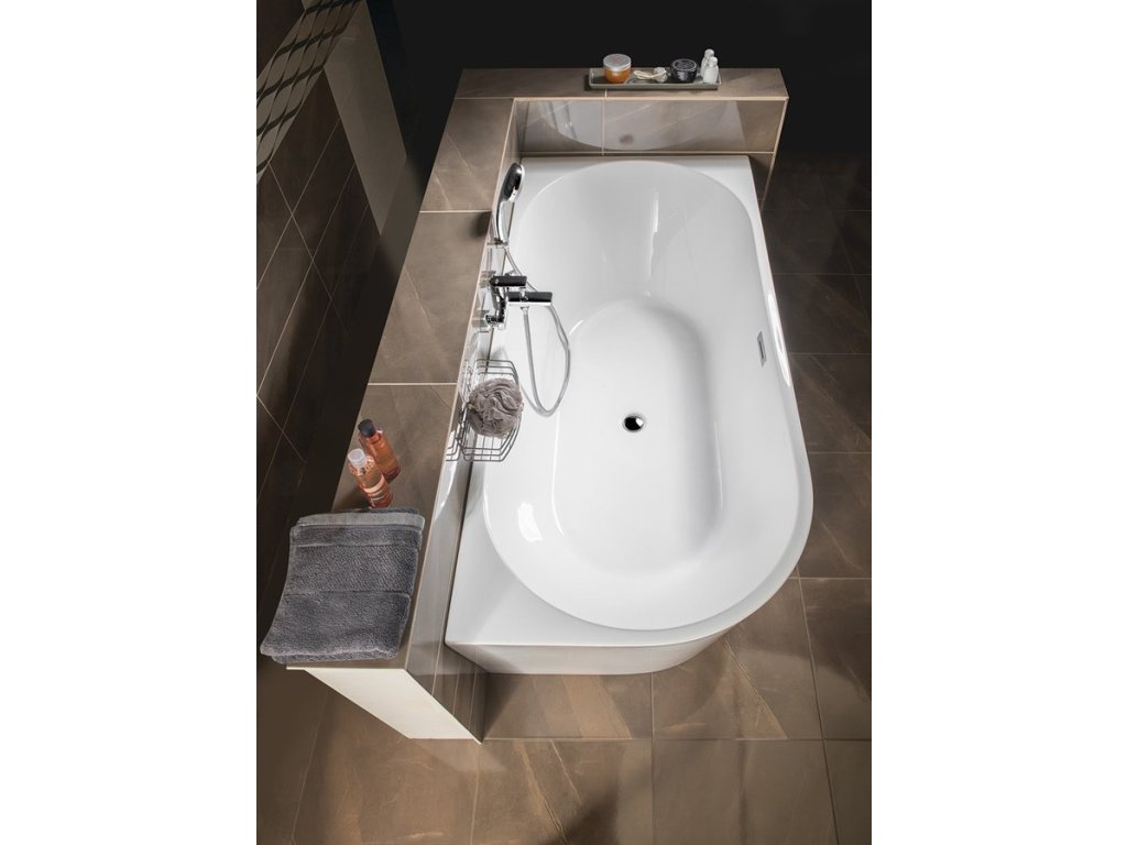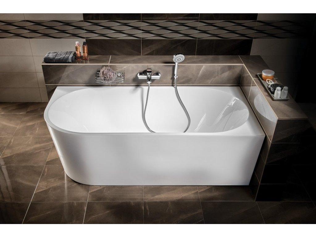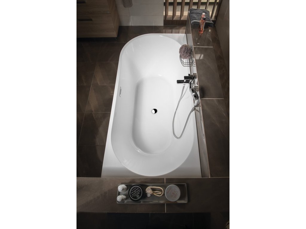 Samostatně stojící vana TIBERA se neobezdívá ani neobkládá. Svým designem je určena k instalaci do rohu, čímž se stává zajímavou variantou náhrady za klasickou rohovou vanu. Pohledová je i zadní strana, takže elegantně bude působit i v prostoru. Za pozornost stojí řešení přepadu ve tvaru obdélníkové štěrbiny s nerezovou krytkou.