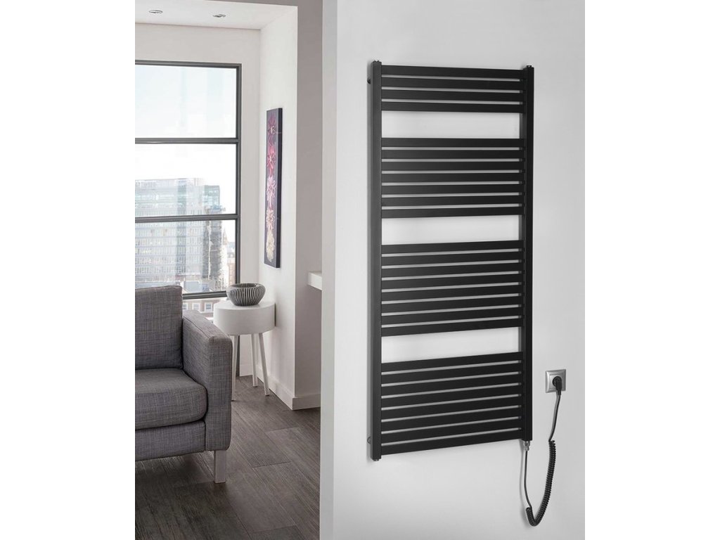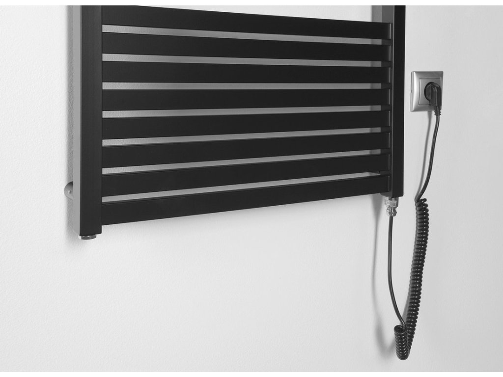 Elektrická otopná tělesa s čtyřhrannými trubkami. Elektrická topení jsou vhodná k umístění do koupelen, chodeb nebo WC. Jsou opatřena elektrickou topnou tyčí s kabelem a vidlicí do zásuvky.