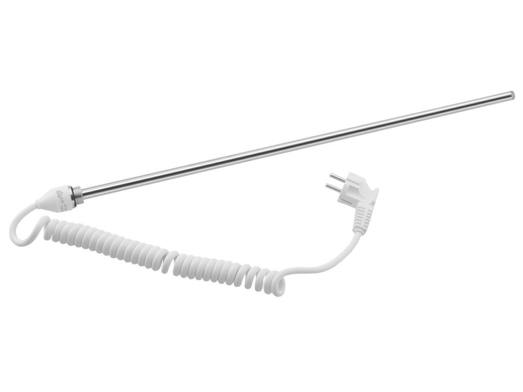 Elektrická topná tyč pro přímé zapojení do zásuvky elektrické sítě 230 V. Vhodná pro ohřev koupelnových radiátorů, které nejsou zapojeny do systému ústředního vytápění nebo mají kombinované připojení ústředního a elektrického vytápění, umožňuje zahřátí radiátoru i mimo topnou sezónu.