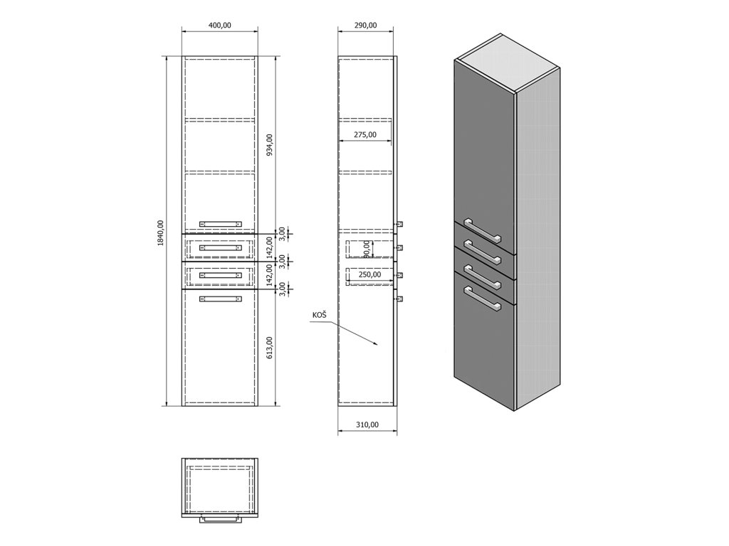 | Typ skříňky: | Zásuvky a dvířka |