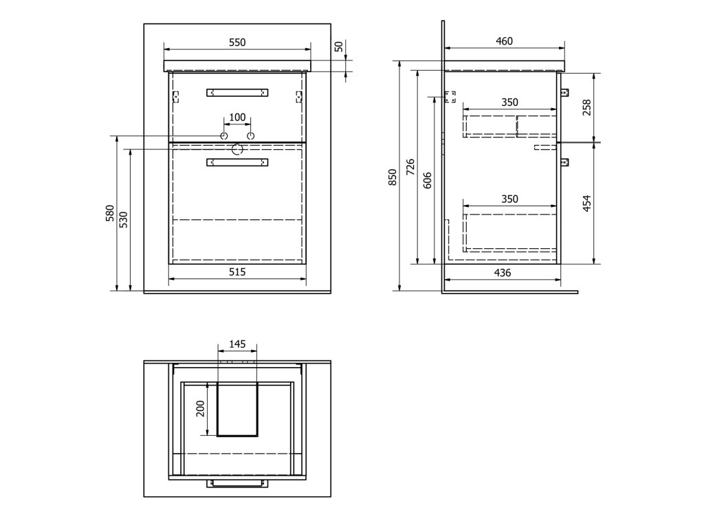 Aqualine VEGA umyvadlová skříňka 51,5x72,6x43,6cm, 2x zásuvka, bílá VG053