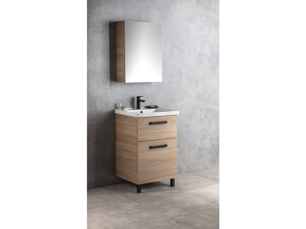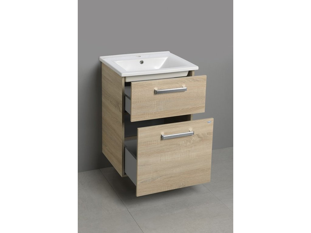Aqualine VEGA umyvadlová skříňka 51,5x72,6x43,6cm, 2x zásuvka, dub platin VG853