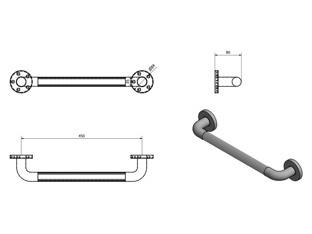 Odolné plastové madlo poskytuje bezpečnou oporu díky drážkám na rukojeti, které poskytují bezpečné uchopení i mokrýma rukama.