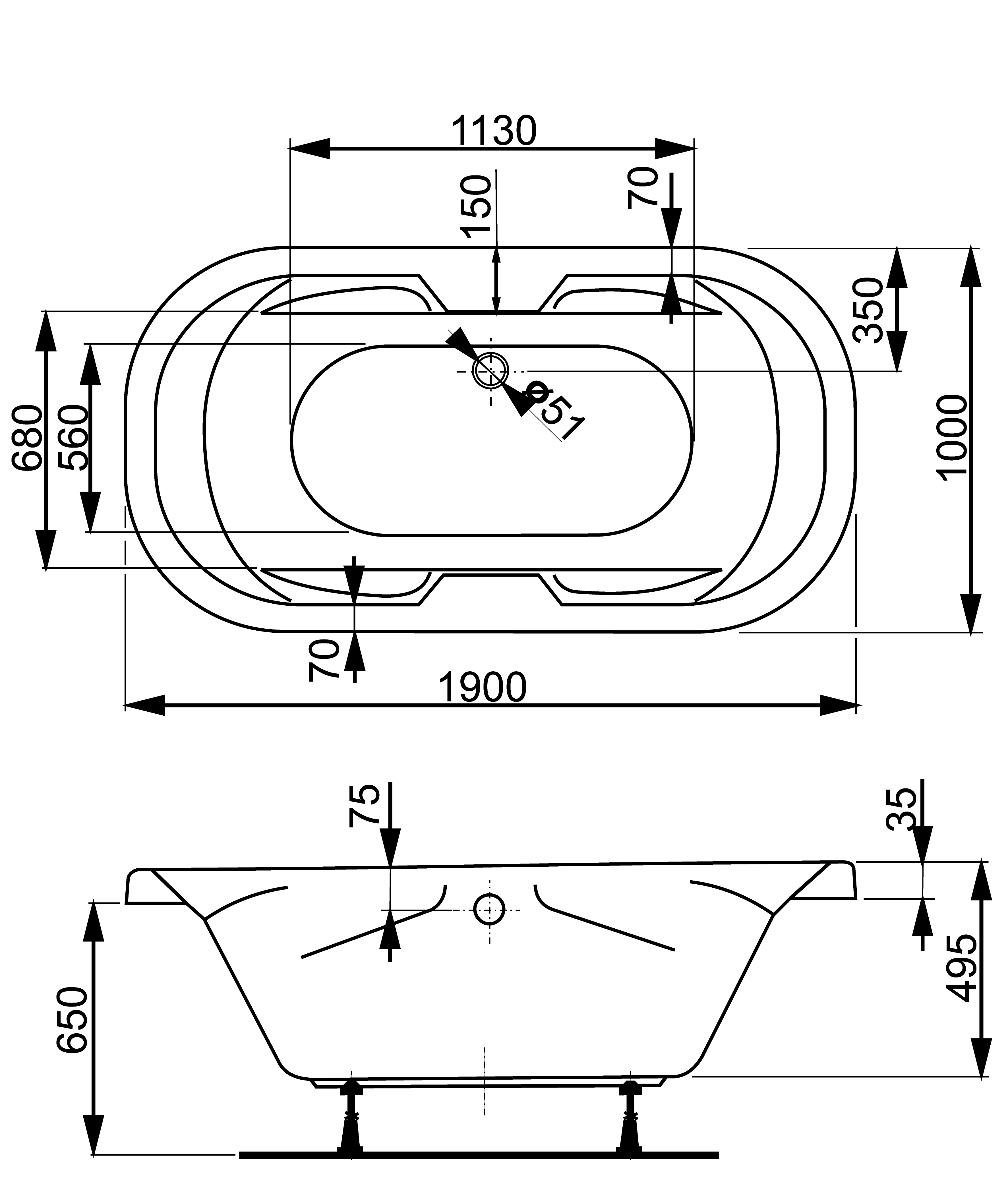 Oválná masážní vana FANTASY FLAT 190 x 100 cm.