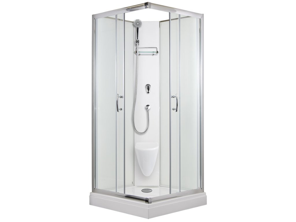 Sprchový box ARTTEC SMARAGD MODEL 2 grape, vlastní výroby, s posuvnými dveřmi čtvercový se vyznačuje vysokou kvalitou a jednoduchým designem. Nabízí vše, co potřebujete k pohodlnému každodennímu sprchování: baterii s ruční sprchou a držákem, poličku, vestavěné sedátko a vaničku z litého mramoru.