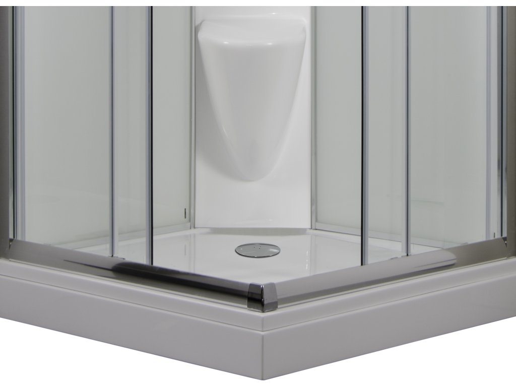 Super bílá neprůhledná zadní skla a přední výplň z čirého 5mm bezpečnostního skla v leštěném hliníkovém profilu zajistí Vaší koupelně elegantní vzhled.