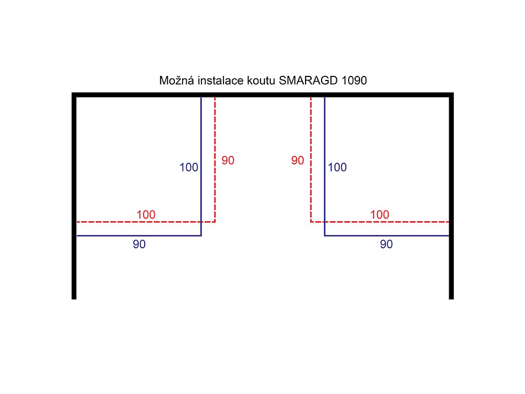 Možnost umístění do pravého i levého rohu. Možnost prohození delší a kratší stěny. Bližší detaily na přiloženém obrázku.