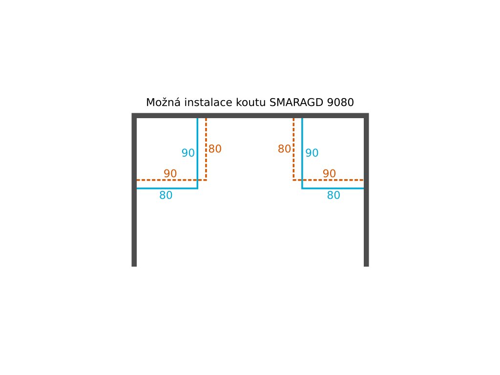 Možnost umístění do pravého i levého rohu. Možnost prohození delší a kratší stěny. Bližší detaily na přiloženém obrázku.