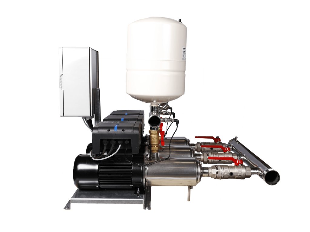 Automatická tlaková stanice obsahuje 3 paralelně zapojená horizontální nerezová odstředivá čerpadla. Každé čerpadlo je vybaveno frekvenčním měničem, který je umístěn na motoru. Konstrukční součásti, které jsou v kontaktu s čerpanou kapalinou, jsou vyrobeny z korozivzdorné oceli AISI 304.