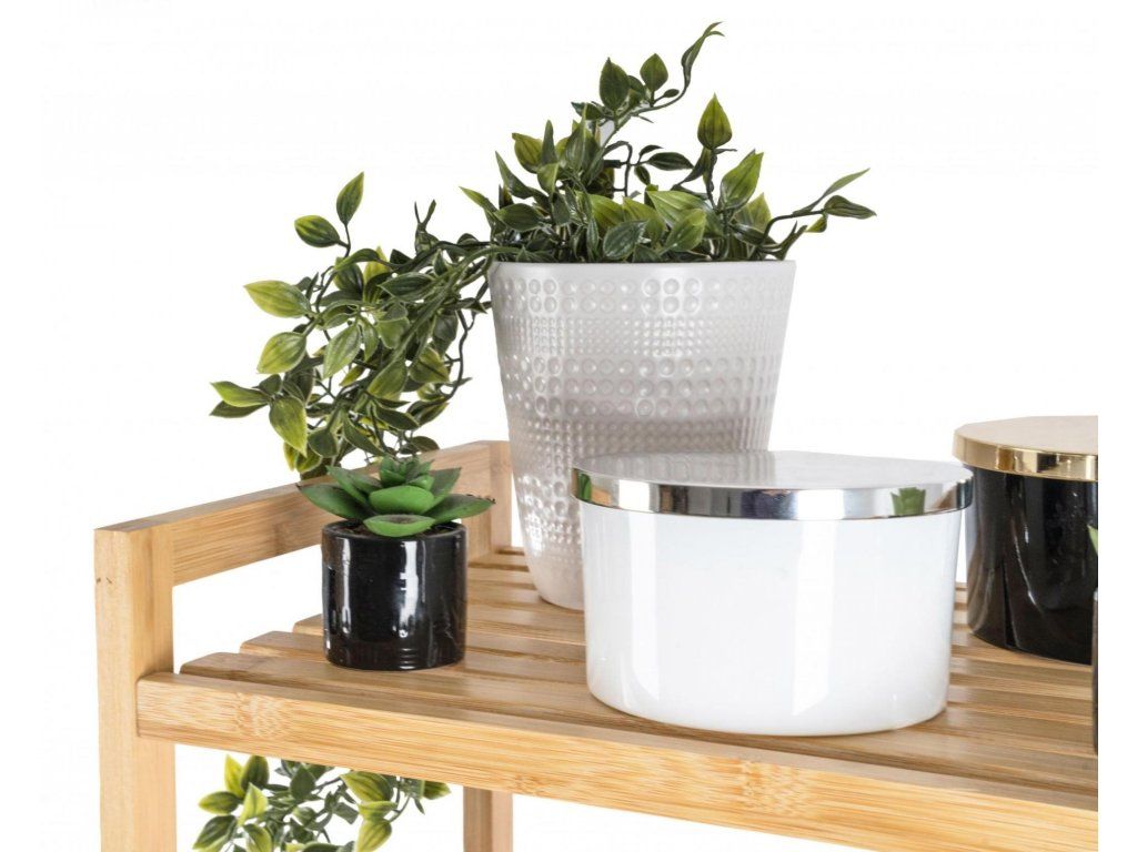 Bambus je překvapivě lehký, takže s celým stojanem s policemi můžete snadno manipulovat. Zároveň je ale dostatečně pevný, takže unese i větší zátěž. Jednou z výborných vlastností bambusového dřeva je navíc jeho velká odolnost vůči vlhkosti a přirozená odolnost vůči bakteriím a plísním, takže se nemusíte obávat jeho umístění v koupelně nebo prádelně.