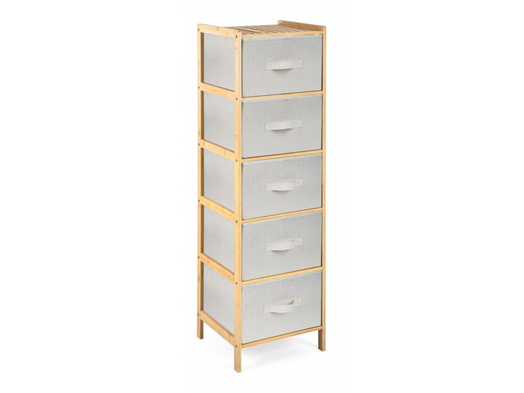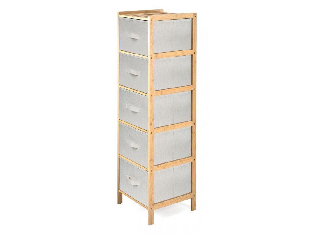 Praktický stojan s 5 výsuvnými textilními košíky ušetří spoustu místa a uložíte do něj vše, co potřebujete. Potřeby na praní nebo kosmetiku, oblečení i dětské hračky. Každý košík má objem 21 litrů, šířka je 33 cm, výška 19 cm a hloubka 35 cm. Celý stojan má na výšku 1,20 m.