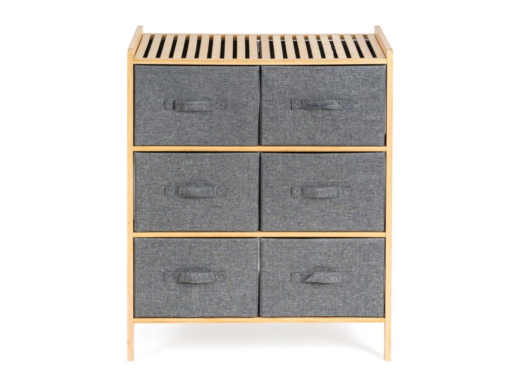 Praktický stojan se 6 výsuvnými textilními košíky ušetří spoustu místa a uložíte do něj vše, co potřebujete. Potřeby na praní nebo kosmetiku, oblečení i dětské hračky. Každý košík má objem 20 litrů, šířka je 31 cm, výška 19 cm a hloubka 35 cm. Celý stojan má na výšku jen 78,5 cm.