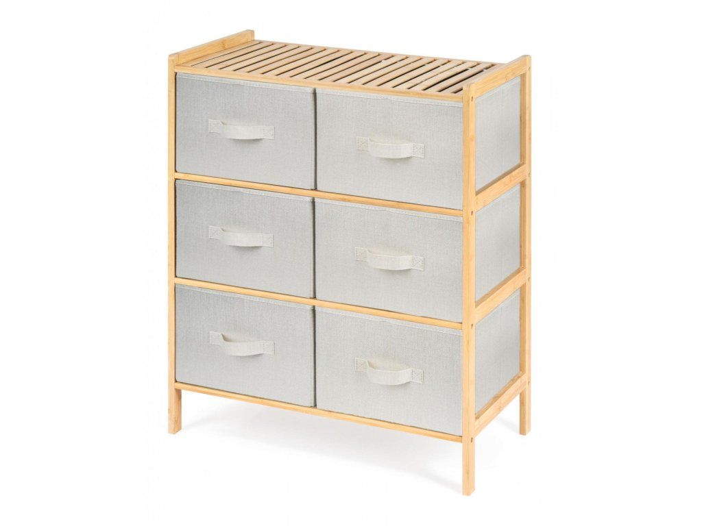 Praktický stojan se 6 výsuvnými textilními košíky ušetří spoustu místa a uložíte do něj vše, co potřebujete. Potřeby na praní nebo kosmetiku, oblečení i dětské hračky. Každý košík má objem 20 litrů, šířka je 31 cm, výška 19 cm a hloubka 35 cm. Celý stojan má na výšku jen 78,5 cm.