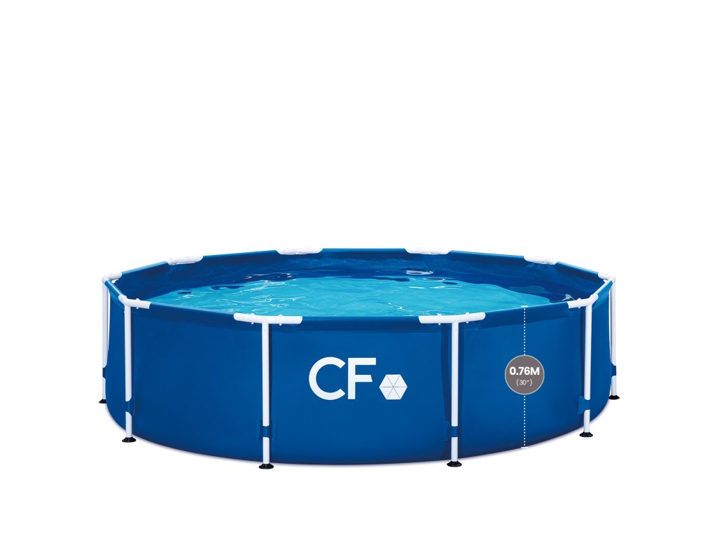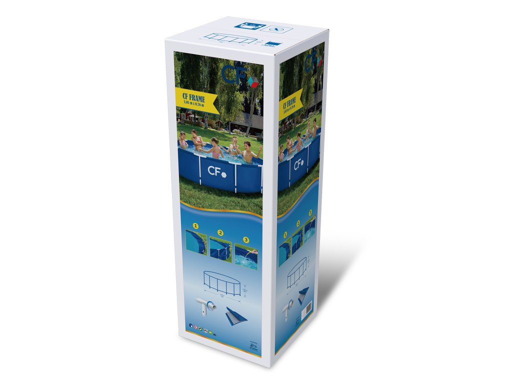 Detailní popis produktu Připravte se na teplé počasí a nekonečné hodiny vodních radovánek na vlastním zahradě s rámovým nadzemním bazénem CF FRAME. Tento rámový nadzemní bazén je navržen pro rychlou instalaci a může být připraven během několika desítek minut. Tento nadzemní kruhový bazén s průměrem 305 cm je ideální pro celou rodinu. Bazén je vyroben z odolných a super pevných PVC materiálů, aby bylo zajištěno, že zůstane stát i přes veškerou zábavu, kterou tento bazén nabízí. Užijte si den v pohodlí a soukromí vaší zahrady s tímto rámovým bazénem.Super pevné stěny vyrobené ze 3 PVC vrstev pro dlouhou životnost a rámová konstrukce z ocelových trubek.Snadné sestavení a připraveno ke koupání cca za 15-20 minut.Doporučujeme bazén přikrývat solární nebo krycí plachtou pro lepší výhřevnost a čistotu bazénu. Parametry:Typ bazénu: rámovýBarva: modrý vnitřek / modrá zvnějškuMateriál: PVCVýška: 76 cmPrůměr: 305 cmKapacita: 4,8m3Filtrační čerpadlo v ceně: NeVčetně krytu: NeVčetně žebříku: NeMontáž bez nářadí: AnoVčetně žebříku: NeVčetně pod bazénové podložky: NeTloušťka stěny: 0,50 mmTloušťka dna: 0,26 mm Součást balení:Konstrukce bazénu s fólií a průchodky stěnou Bazén umožňuje připojení filtrace (filtrace ani hadice nejsou součástí balení). Tento typ bazénu není určen pro zabudování do země.Doplňkové parametry