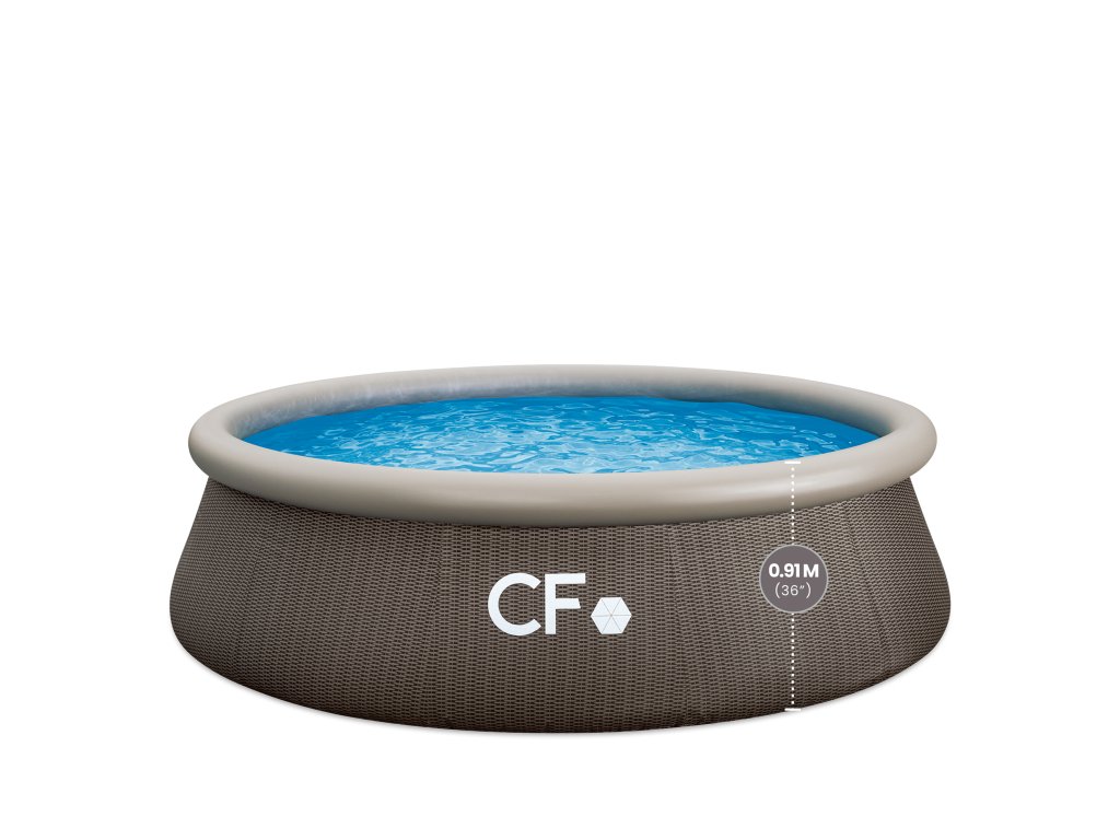 CF QUICK 366 × 91 cm patří mezi nejprodávanější nadzemní bazény v České republice – a není to náhoda. Jedná se o samonosný kruhový bazén s nafukovacím prstencem, který se postaví sám tlakem napouštěné vody. Instalace je jednoduchá a zvládne ji jedna osoba. Stačí připravit rovný podklad, rozložit bazén, nafouknout horní prstenec a začít napouštět vodu. Stoupající voda postupně zvedne stěny do finální polohy. Bazén je vyroben ze super pevného třívrstvého PVC materiálu, který kombinuje vysokou odolnost proti protržení, UV stabilitu a dlouhou životnost. Vnější ratanový dekor dodává bazénu elegantní vzhled, který působí přirozeně a zapadne do moderní zahrady. Vnitřní část je klasicky modrá pro čistý a příjemný vzhled vody. Díky absenci pevných konstrukčních prvků je bazén bezpečnější pro děti (vždy však pod dohledem dospělé osoby). Po sezóně jej lze jednoduše vypustit, složit a uskladnit – bez složité demontáže kovových rámů. Bazén je vybaven průchodkami stěnou pro napojení filtrace (filtrace není součástí balení). Klíčové vlastnosti:Samonosný nadzemní bazén s nafukovacím prstencem Rychlá instalace bez nářadí Odolné 3vrstvé PVC stěny Moderní ratanový dekor Připraven ke koupání během několika minut Průchodky stěnou pro napojení filtrace Snadné zazimování a skladování Vhodný pro rodiny s dětmi5 vychytávek, které oceníte:Samonosná konstrukce bez kovového rámu. Žádné skládání konstrukce. Nafouknete prstenec a bazén se postaví sám. Prémiový ratanový dekor. Design, který působí luxusněji než běžné modré bazény. 3vrstvá zesílená PVC fólie. Vyšší odolnost proti protržení a mechanickému poškození. Připojení filtrace přes průchodky stěnou. Možnost napojení pískové nebo kartušové filtrace. Snadné skladování. Po sezóně jednoduše vypustíte, usušíte a složíte.V čem CF QUICK vyniká oproti konkurenci:Stejná výrobní linka jako přední značky – identická kvalita zpracování Prémiový ratanový dekor – moderní vzhled zahrady Silná 3vrstvá PVC konstrukce (0,55 mm stěna) Rychlá montáž bez nářadí – skutečně do 10 minut Nulové reklamace – ověřená kvalita bez kompromisů Zázemí silného bazénového specialisty s náhradními dílyTechnické parametry:ParametrHodnotaTyp bazénuSamonosný s nafukovacím prstencemPrůměr366 cmVýška91 cmObjem vodycca 6,9 m³Materiál3vrstvé PVCTloušťka stěny0,55 mmTloušťka dna0,28 mmBarvavnitřní modrá / vnější ratanPřipojení filtraceAno (průchodky stěnou)Filtrace součástíNeKrycí plachtaNeŽebříkNePodložkaNeUrčeno pro zabudováníNeObsah balení:Bazén CF QUICK 366 × 91 cm Průchodky stěnou Návod k instalaciJe vhodný pro:rodiny s dětmi majitele menších a středních zahrad zákazníky, kteří chtějí rychlou instalaci bez složité konstrukce uživatele, kteří chtějí moderní designKupujete od prověřeného bazénového specialisty, který má:servisní oddělení dostupné náhradní díly technickou podporu zkušenosti s tisíci instalacemiCF QUICK není jen další nafukovací bazén. Je to ověřená kvalita z výroby, která dodává i předním značkám. Přehled bazénů CF – rychlý výběr podle velikosti, hloubky a komfortuModelTyp konstrukceRozměr (cm)Hloubka vodyObjem vodyProstor na zahraděIdeální proNáročnost montážeCF QUICK 305 × 76 (ratan)Samonosný (nafukovací prstenec)305 × 7676 cm4 m³MalýDěti, rychlé létoNejrychlejší (10 min)CF FRAME 305 × 76Rámový (ocelová konstrukce)305 × 7676 cm4,8 m³MalýRodina s malými dětmi15–20 minCF FRAME 305 × 91Rámový305 × 9191 cm5,8 m³Malý až středníRodina15–20 minCF FRAME 305 × 107Rámový305 × 107107 cm6,7 m³StředníDěti + dospělí15–20 minCF FRAME 366 × 132 (ratan)Rámový366 × 132132 cm13,8 m³Větší zahradaRodina, částečné plavání20 minCF FRAME 457 × 132 (ratan)Rámový – vrcholný model457 × 132132 cm21 m³Velká zahradaVelká rodina20 min Závěrečné shrnutí: Bazén CF QUICK 366 × 91 cm je ideální volbou pro rodiny, které chtějí rychlé, cenově dostupné a přitom kvalitní řešení letního koupání.Doplňkové parametry
