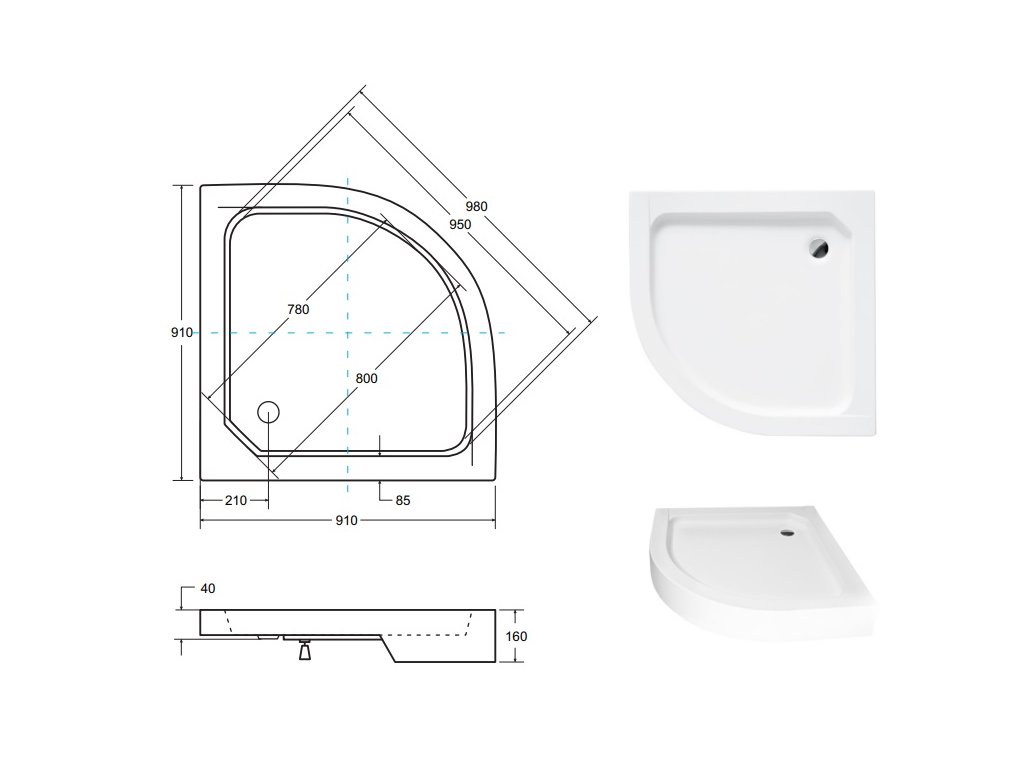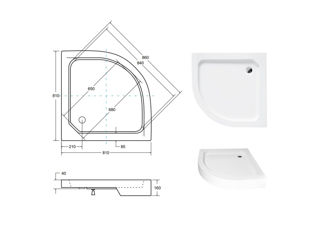 Besco Alex čtvrtkruhová sprchová vanička Rozměr vaničky: 70x70cm, BAA-70