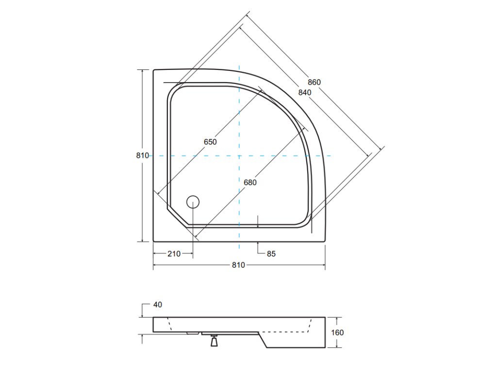 BESCO ALEX STONE EFFECT čtvrtkruhová sprchová vanička Rozměr A - 81, Rozměr B - 81, Rozměr C - 16 OLBVANACALE80S
