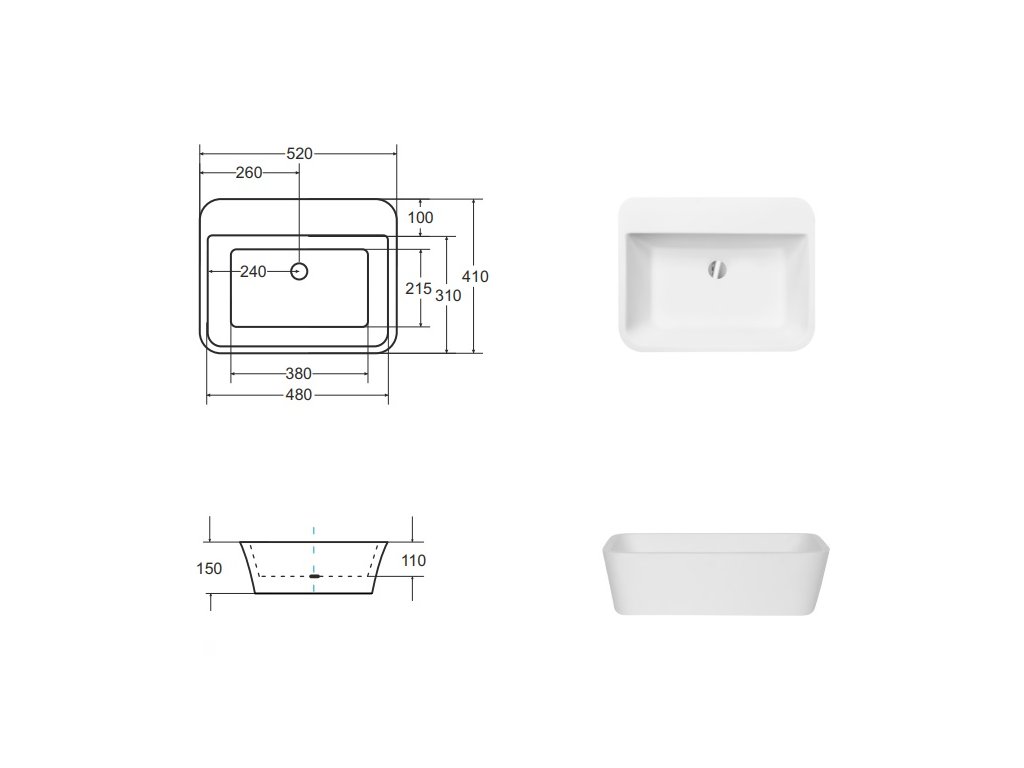 - veškeré technické specifikace naleznete v nákresu umyvadla