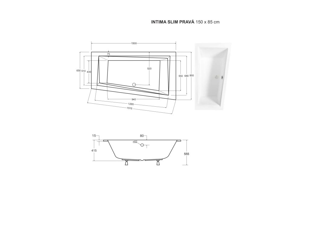 BESCO Asymetrická vana INTIMA SLIM Nožičky k vaně - Bez nožiček, Rozměr vany - 150 × 85 cm, Způsob provedení - Pravé VANINTI15SLIMP