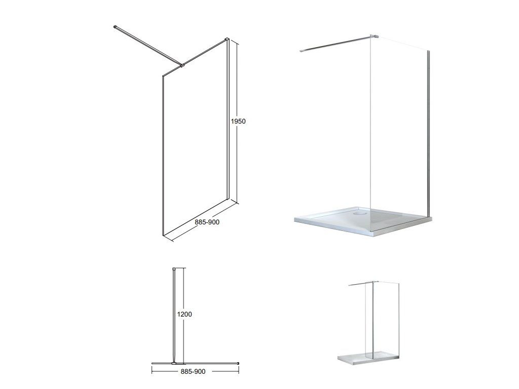 Besco Aveo Black Walk In sprchový kout Rozměr: 90cm, AVB-90-195C