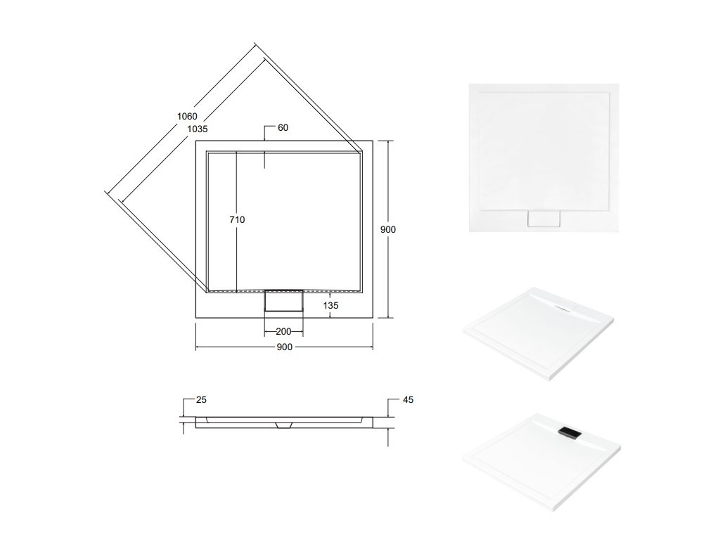 - designová čtvercová sprchová vanička ULTRA SLIM