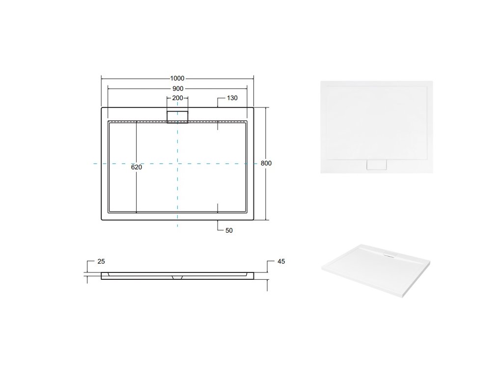 Tabulka rozměrů sprchové vaničky Axim UltraSlim