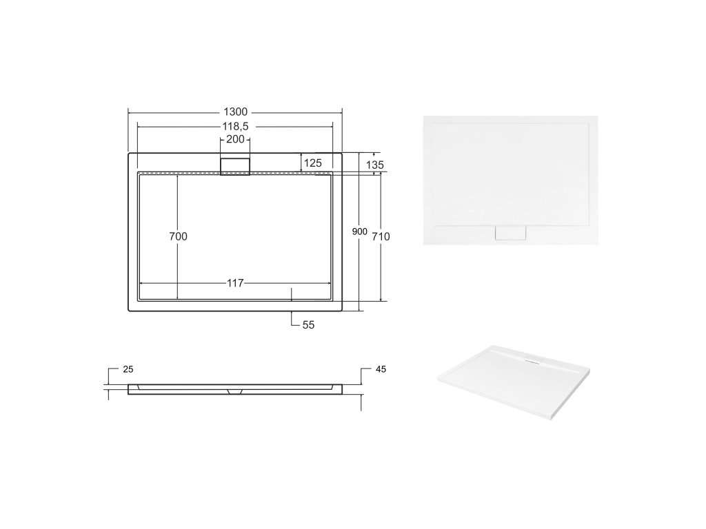 Tabulka rozměrů sprchové vaničky Axim UltraSlim