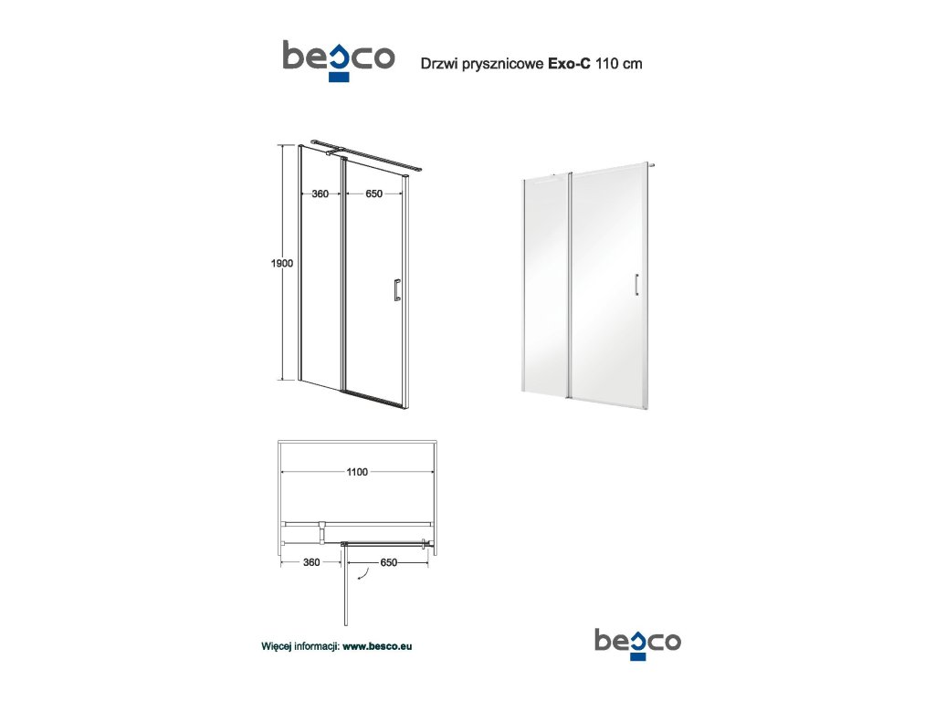 • 110 × 190 (výška) cm, montážní rozměr 108,5 - 111,5 cm