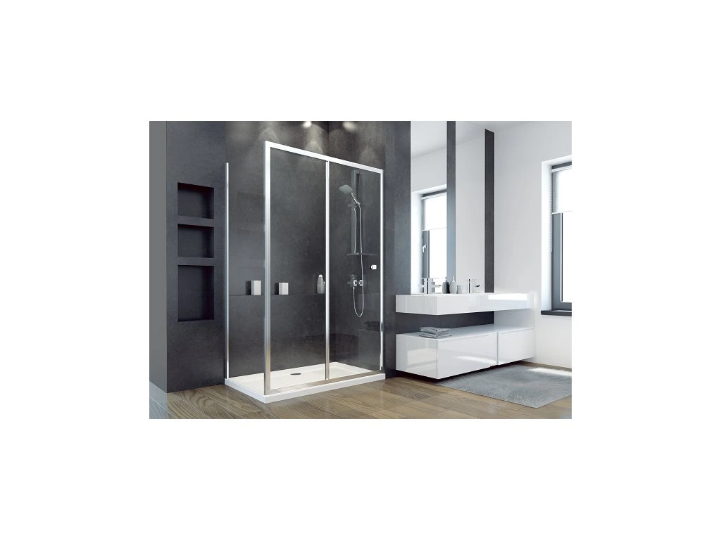 Sprchový kout, tvořený z pevné stěny DUO SLIDE a sprchových dveří je možné instalovat na sprchové vaničky nebo velmi elegantní přímo na podlahu. Při montáži přímo na podlahu jsou velmi efektivním řešením pro odvod vody podlahové odtokové žlaby.
