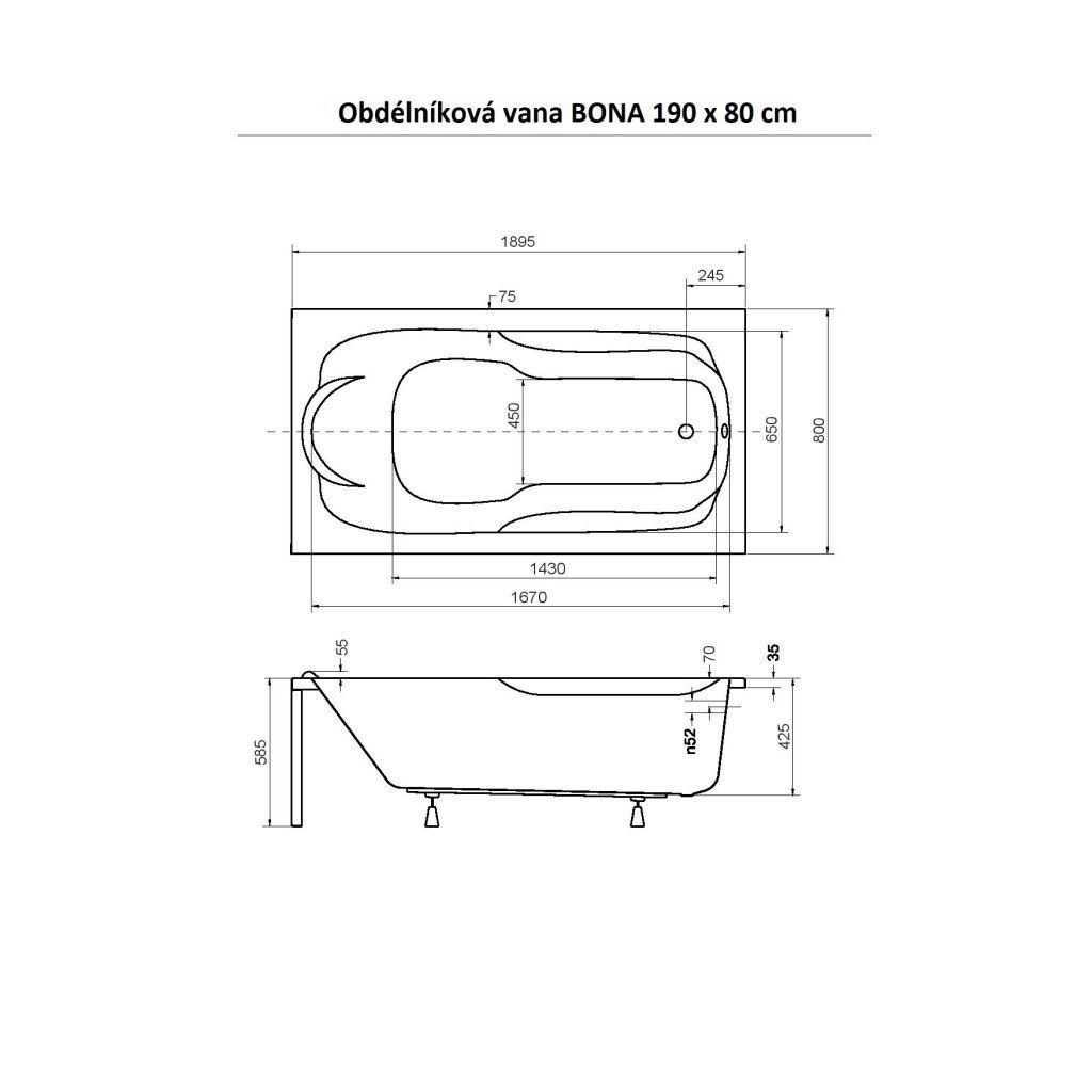 Specifikace akrylátové vany Bona
