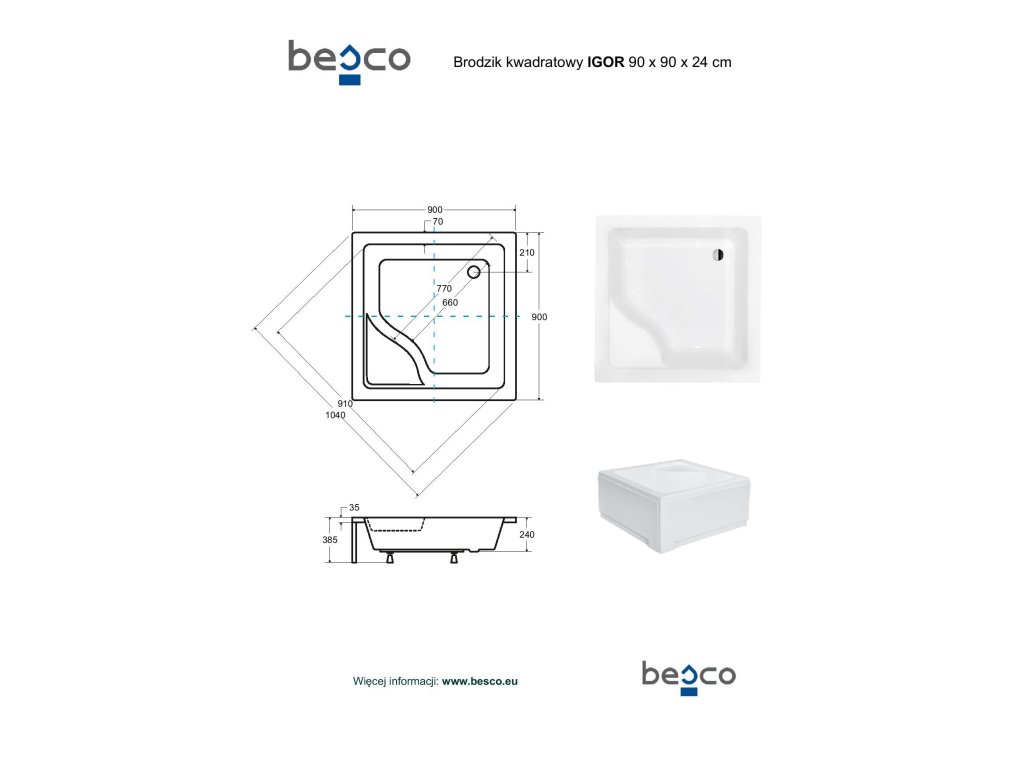 BESCO Čtvercová sprchová vanička IGOR Nožičky k vaně - S nožičkami, Rozměr A - 90, Rozměr B - 90 VANKIGOR90