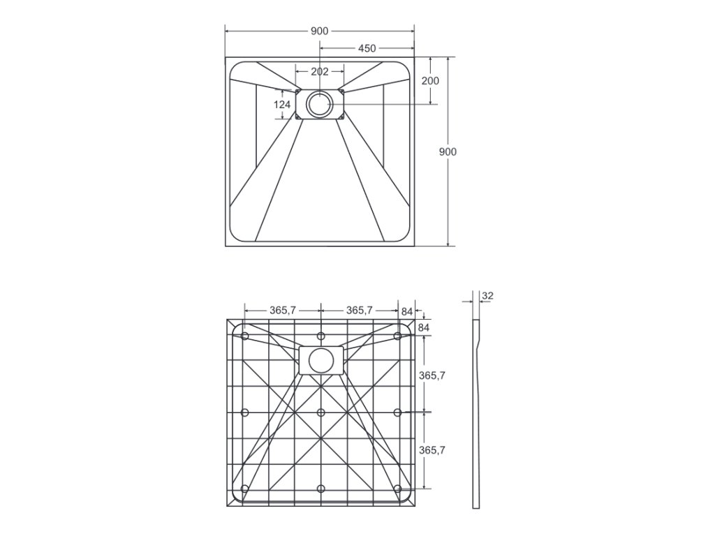 Rozměry a parametry čtvercové vaničky VEXO: