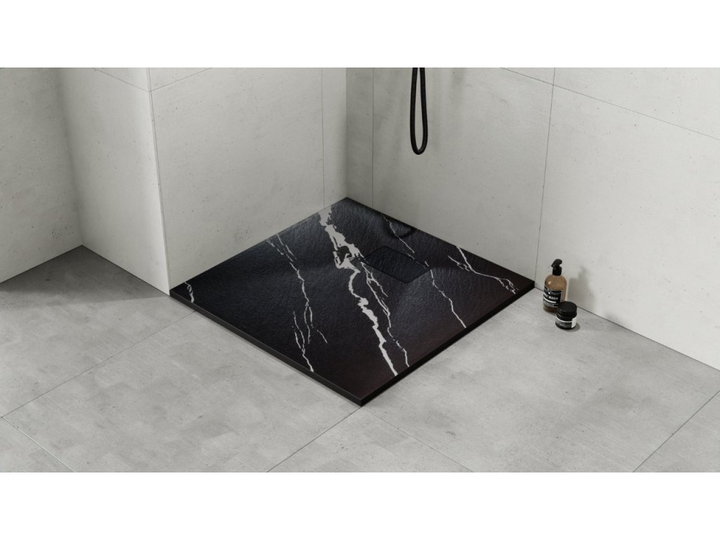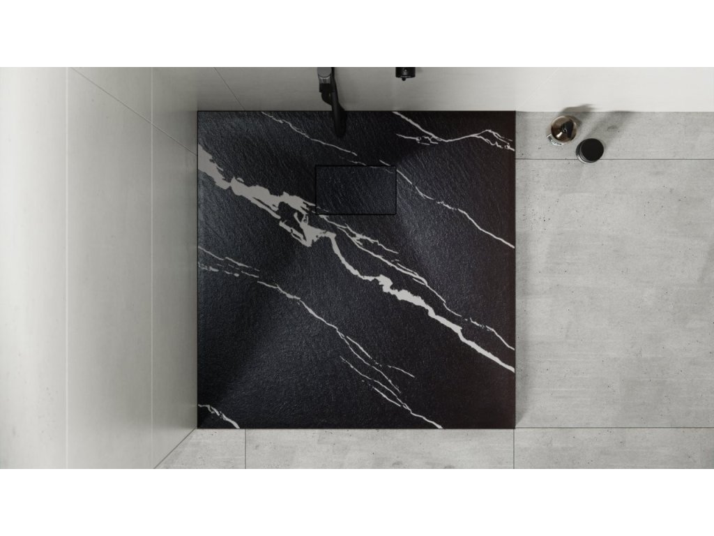 Elegantní ultratenká sprchová vanička VEXO MARBLE ČERNÁ je vyrobena ze speciálního SMC materiálu. Dodává se včetně sifonu ale bez nožiček. Krytka sifonu v barvě vaničky je součástí balení.