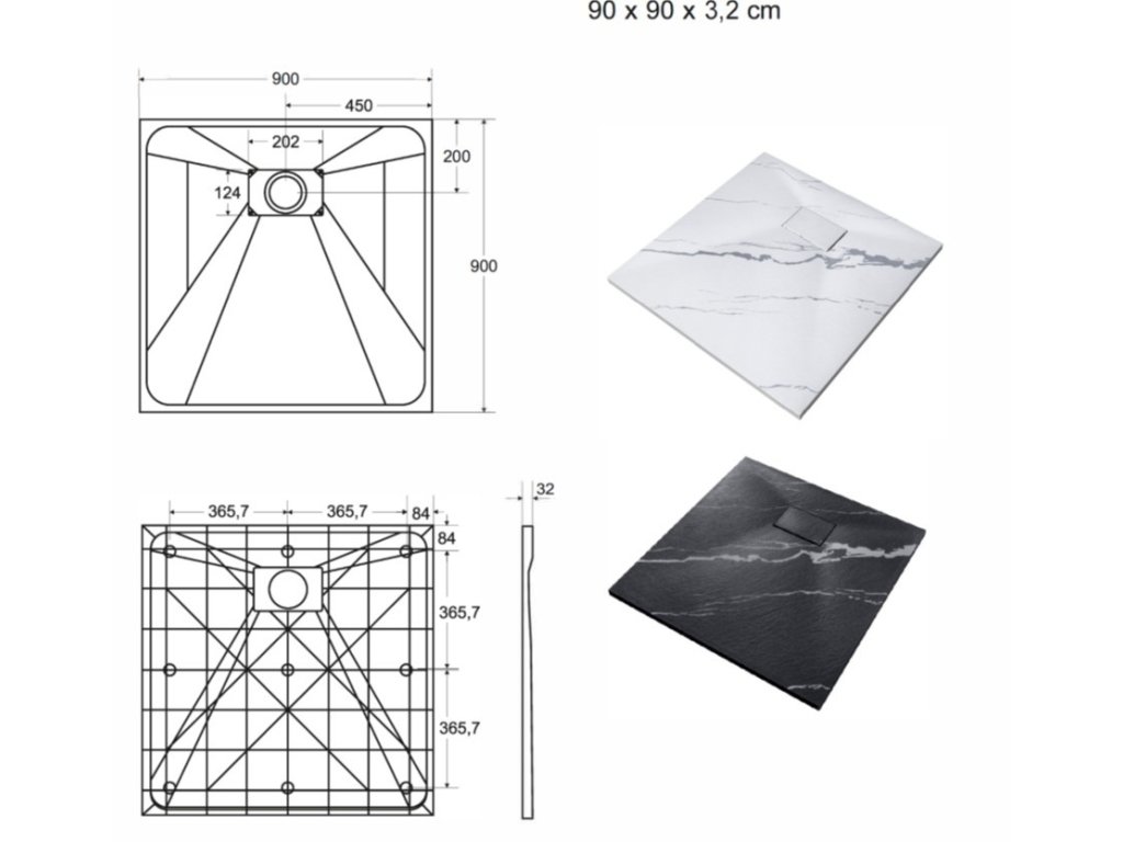 Rozměry a parametry čtvercové vaničky VEXO MARBLE: