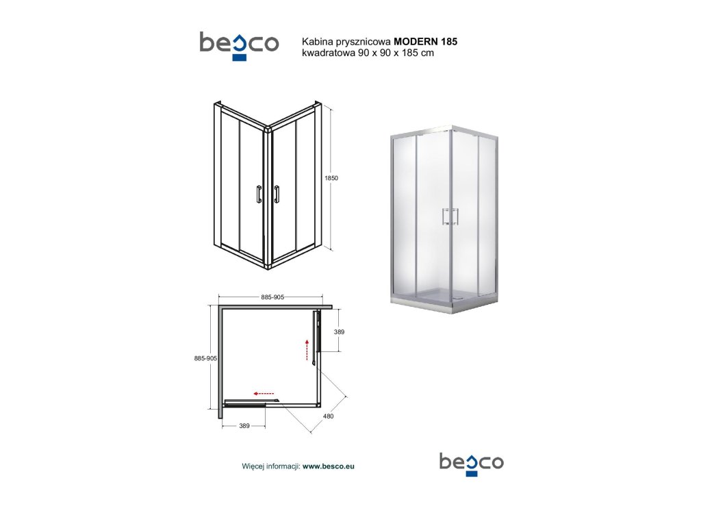 Čtvercový sprchový kout MODERN 185 vyniká vysoce kvalitním zpracováním a spolehlivou funkčností všech součástí a materiálů.
