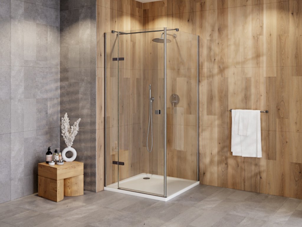 Čtvercový celoskleněný sprchový kout PIXA GRAFIT vyniká vysoce kvalitním zpracováním a spolehlivou funkčností všech součástí a materiálů. Kout se skládá z pevných skel a zalamovacích dveří, které se otevírají do prostoru. Spodní hrana dveřní skla je opatřena okapničkou, díky níž voda ze skla při otevření nezteče do prostoru koupelny, ale do vnitřního prostoru koutu.
