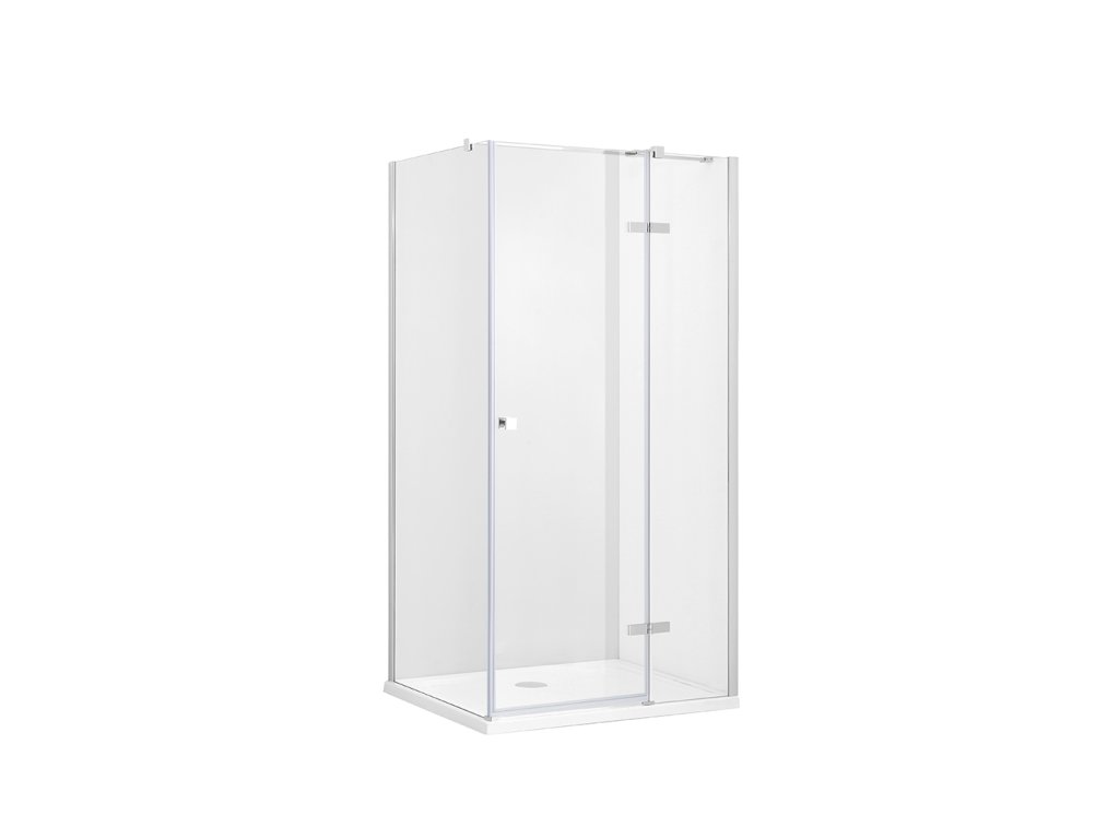 Čtvercový celoskleněný sprchový kout PIXA v rozměru 90x90 cm vyniká vysoce kvalitním zpracováním a spolehlivou funkčností všech součástí a materiálů. Kout se skládá z pevných skel a zalamovacích dveří, které se otevírají do prostoru. Spodní hrana dveřní skla je opatřena okapničkou, díky níž voda ze skla při otevření nezteče do prostoru koupelny, ale do vnitřního prostoru koutu.